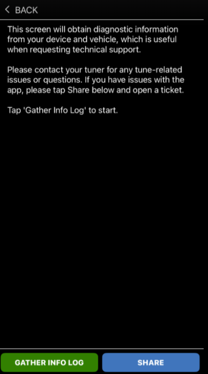 | 5. | Tap the GATHER INFO LOG button. The app will begin gathering the Info Log. |